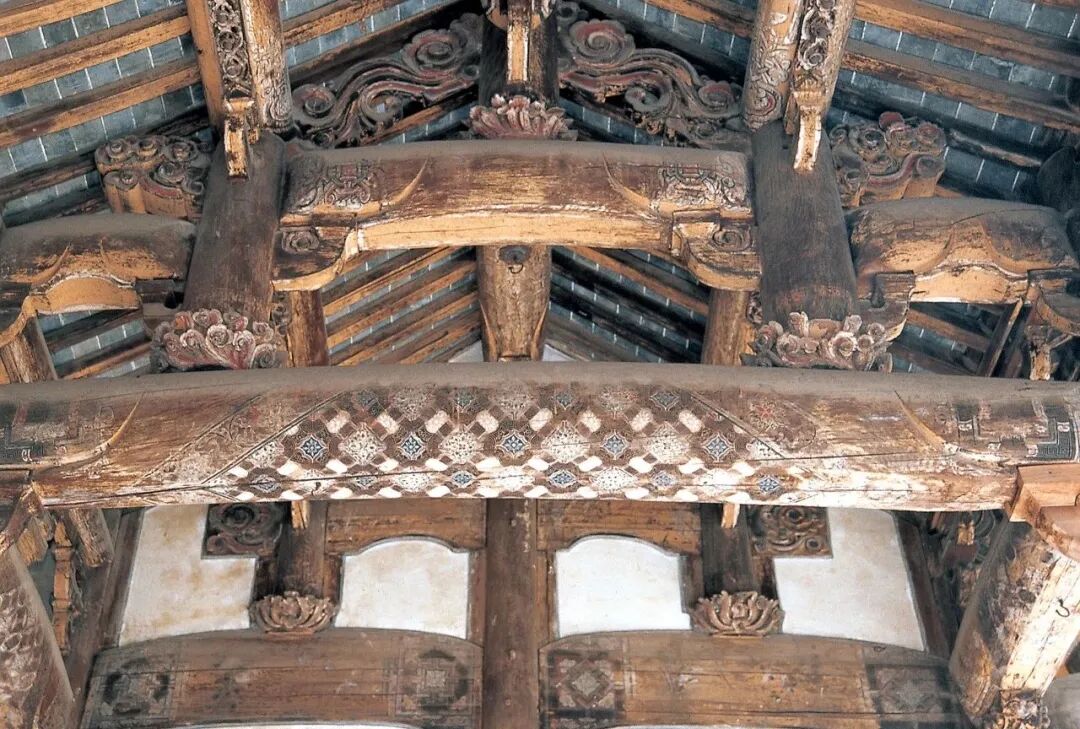 雀替、斗拱、榫卯、蜀柱等等一系列木元素,在宏伟的古建筑上傲然挺立,其上细腻生动的雕饰在时间磨炼里依旧保持着清晰的纹理,眼观、轻抚,木材强大的生命力始终鲜活蓬勃。